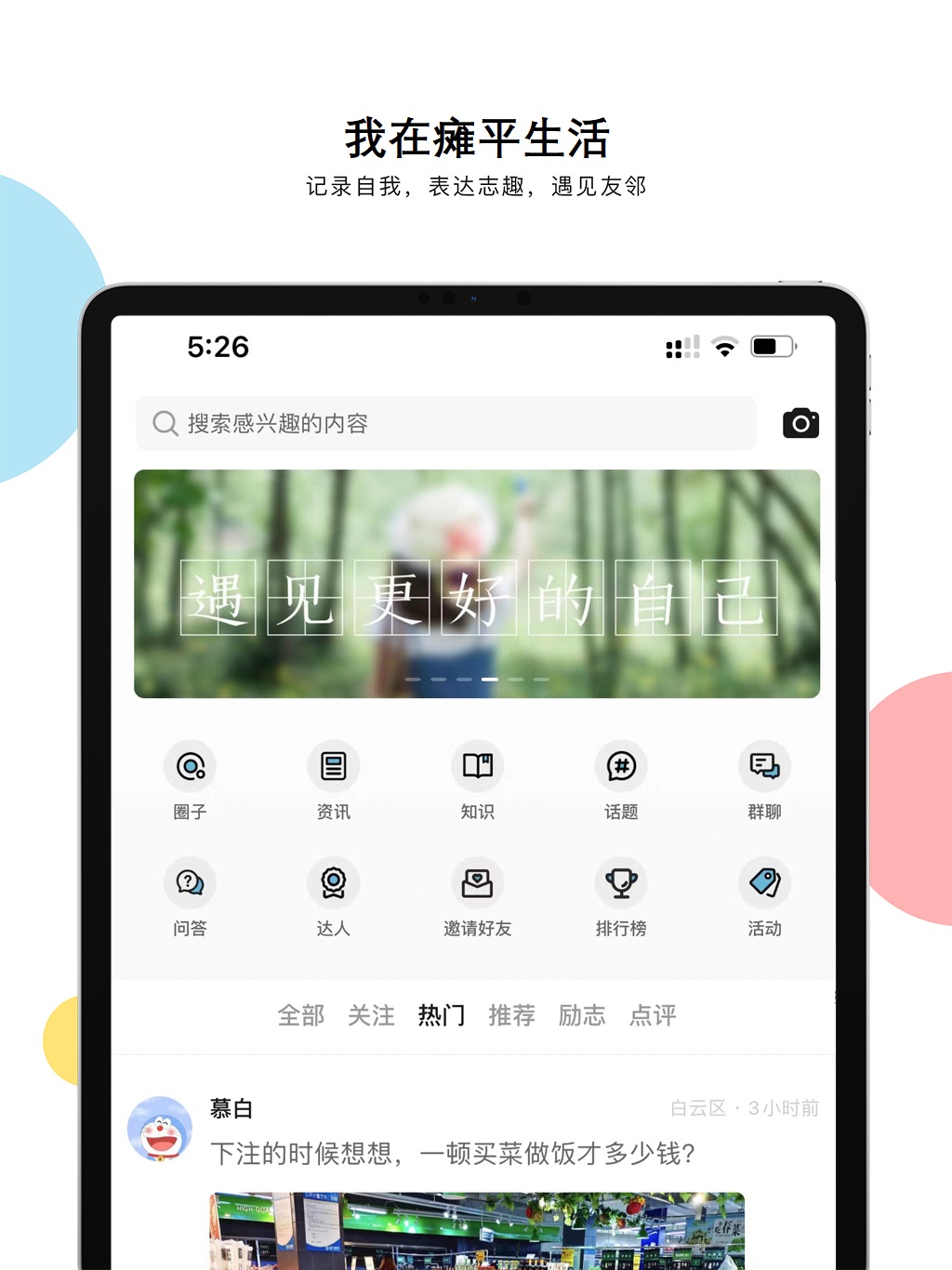 使用场景: 当您无聊的时候,可以浏览一下瘫平生活的热帖,与网友们一起跟帖,还有群聊可以和群友讨论一下身边的热点事件。 当您无法忍受孤独,可以在这里获得心理上的慰藉,可以把这里当做树洞。 当您漫步街头的时候,可以随手拍拍,分享生活点滴。